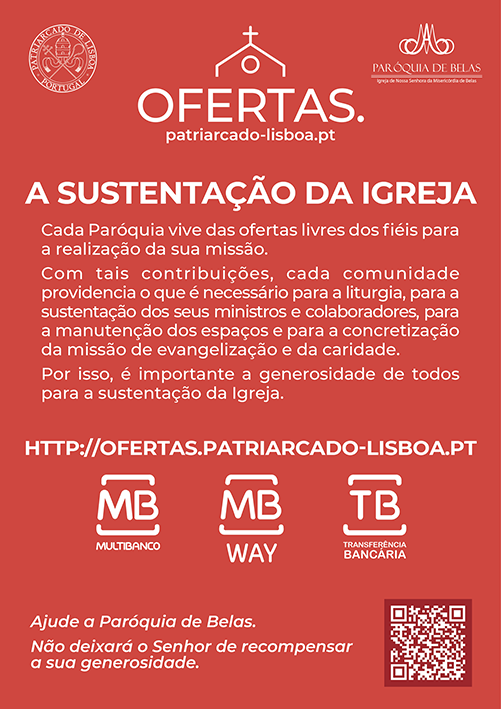 Basta aceder ao link (http://ofertas.patriarcado-lisboa.pt/index.php...) ou ler o QRCode presente no cartaz poder fazer o seu contributo e ajudar a nossa paróquia de Belas.